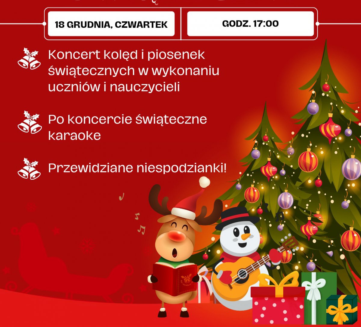 W Państwowej Szkole Muzycznej I stopnia im. Feliksa Nowowiejskiego w Chojnicach odbędzie się w czwartek, 18 grudnia o godzinie 17:00. Uczniowie i nauczyciele zaprezentują najpiękniejsze kolędy i piosenki świąteczne.