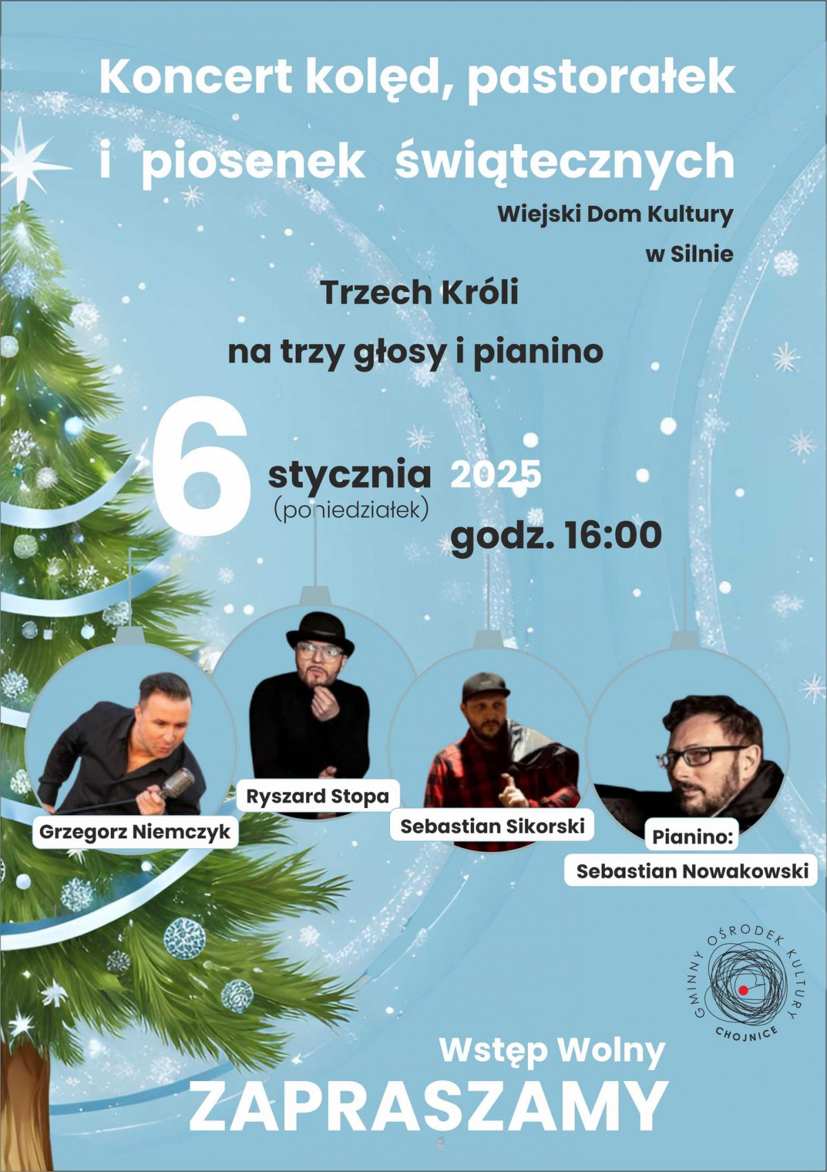 Wiejski Dom Kultury w Silnie zaprasza na koncert kolęd, pastorałek i piosenek świątecznych. Odbędzie się w święto Trzech Króli, czyli w poniedziałek 6 stycznia 2025. Początek o godzinie 16.00.