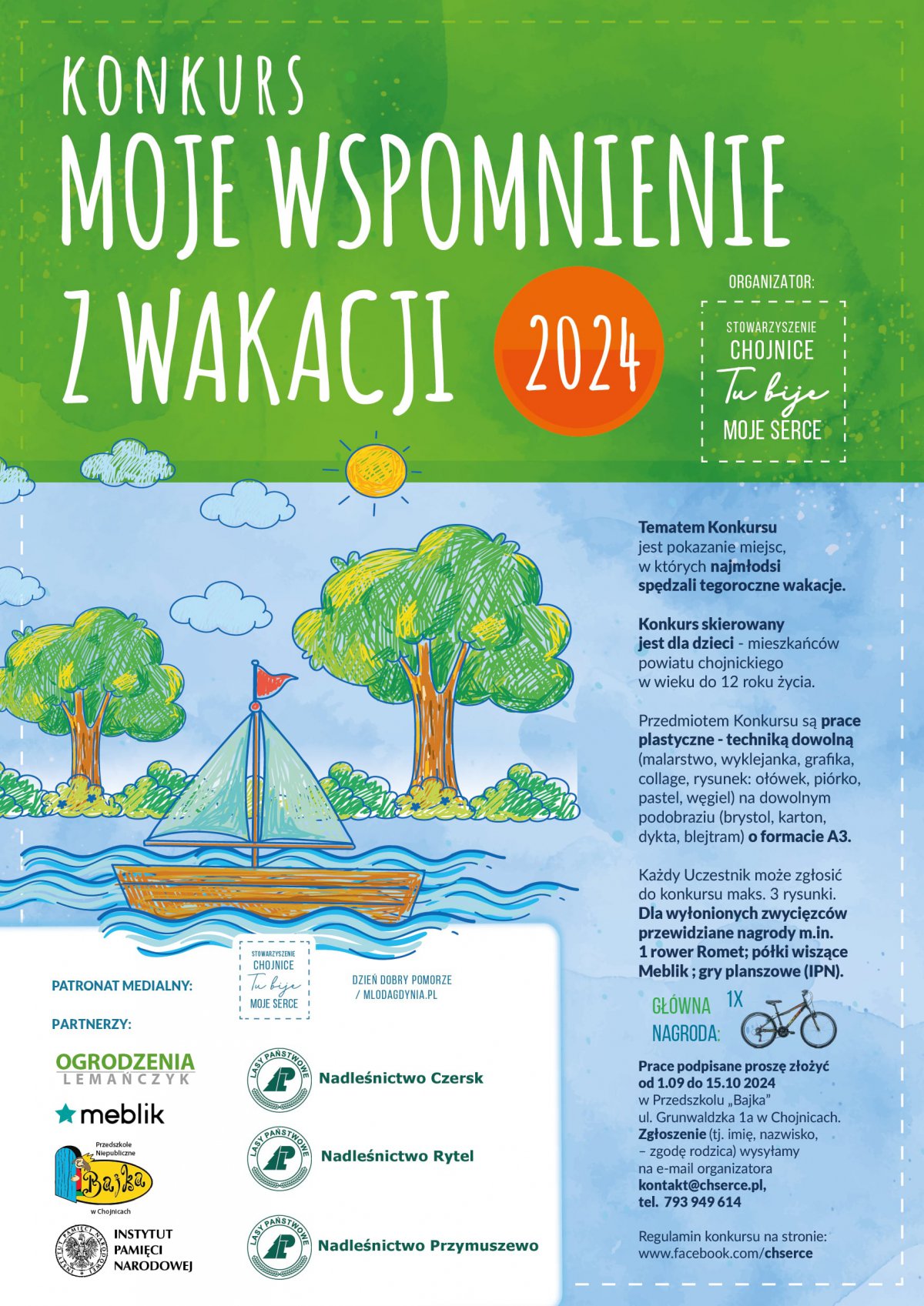 Wzorem lat poprzednich Stowarzyszenie „Chojnice – tu Bije moje Serce” realizuje kolejną edycje konkursu plastycznego „Moje Wspomnienie z Wakacji”. Do udziału w konkursie zapraszamy dzieci do 12 roku życia.