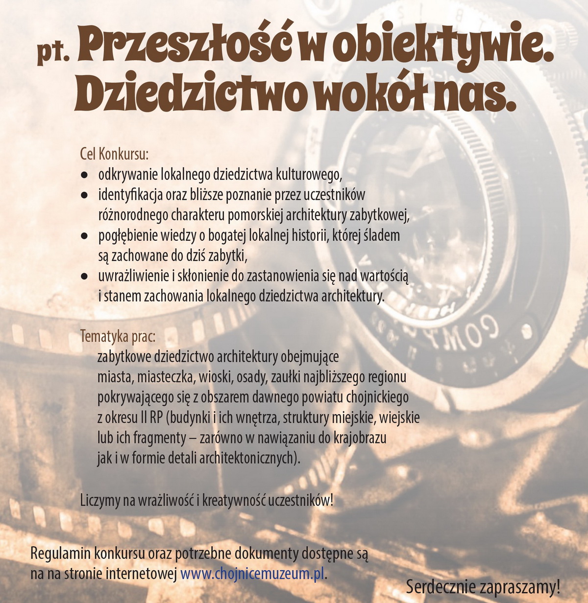 Muzeum w Chojnicach informuje, iż jeszcze można przesyłać zdjęcia, które wezmą udział w konkursie. Organizator przedłużył termin składania prac do końca października.