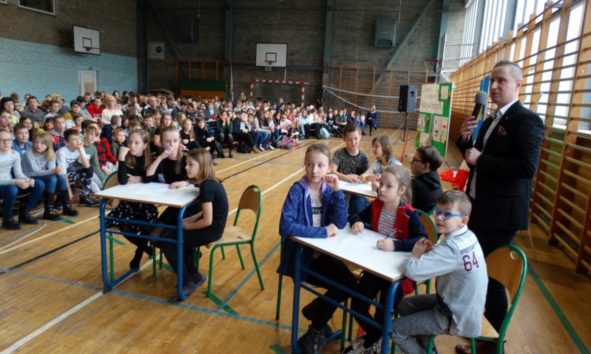 Trzy najlepsze drużyny z klas 4-5 oraz trójki z klas 6 - 8 przy wielkim aplauzie publiczności zgromadzonej w sali gimnastycznej zmierzyły się z pytaniami przygotowanymi przez nauczycieli historii, Piotra Skorupskiego i Lucyny Bardelskiej. Jak każdego roku pytaniom i zadaniom konkursowym towarzyszył bogaty materiał wizualny, który prezentowany na slajdach zaciekawił wszystkich uczniów i nauczycieli zebranych w sali.