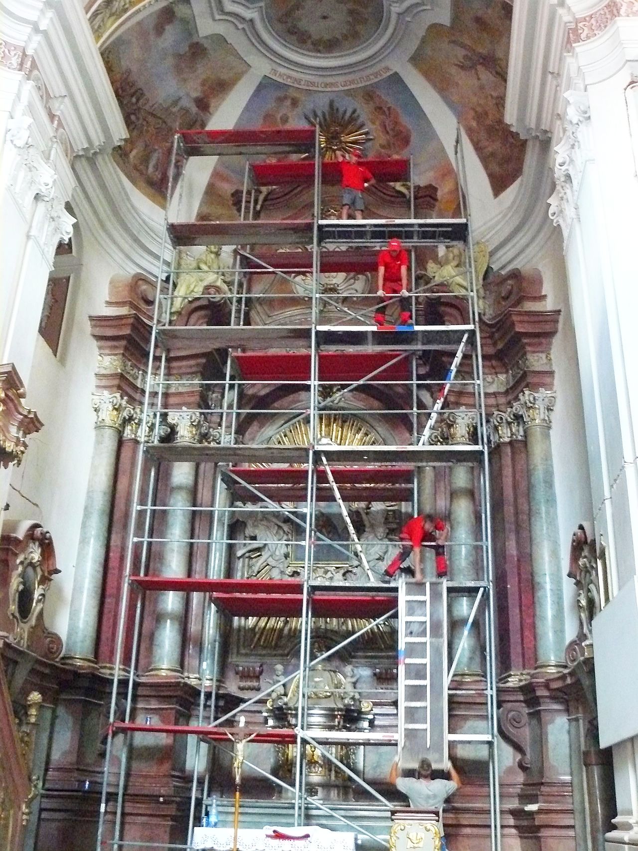 Na razie przed ołtarzem widać tylko rusztowania, ale za kilka dni rozpoczną się prace konserwatorskie. Dotyczą one prac we wnętrzu XVIII - wiecznego kościoła gimnazjalnego.