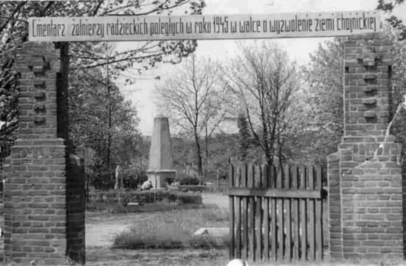 Z kim Pan Finster konsultował sprawę zmiany napisu na pomniku po roku 2002? Na cokole pojawił się napis "Bohaterom ZSRR 1945" (a było i "Bohaterom ZSRR 1939 - 1945" przez krótki czas po odnowieniu cmentarza) właśnie po odnowieniu cmentarza i ustawieniu płotu od strony ul. Kościerskiej z czerwonymi gwiazdami. Ten cmentarz zawsze, do czasu jego renowacji ok. 2002 roku, był Cmentarzem Żołnierzy Radzieckich. Zaświadcza o tym zdjęcie. Z naszej wiedzy wynika, że zostało ono zrobione w Chojnicach w epoce stalinowskiej. Tym samym, długo przed 2002 rokiem, nikt w Chojnicach nie myślał czcić "Bohaterów ZSRR", a tylko tych, którzy w walce z nazizmem w Chojnicach oddali życie w 1945 roku. Zresztą jeśli ostatecznie zajdzie taka konieczność to przedstawimy historię samego cmentarza i napisów na cokole od roku 1946 po dzień dzisiejszy.