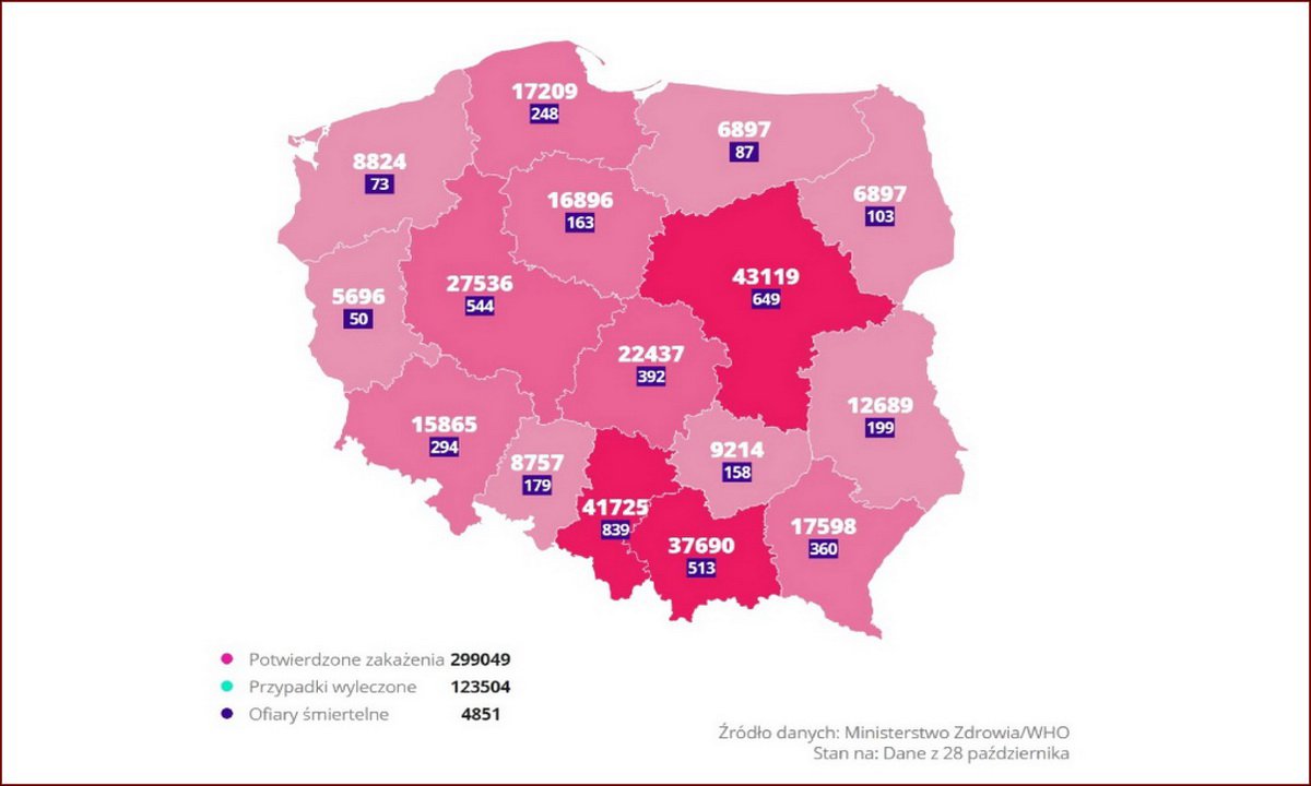 Raport z dnia 28 października 2020 roku na temat Sars-CoV-2 w województwie pomorskim. Państwowy Pomorski Wojewódzki Inspektor Sanitarny informuje o 901 nowych potwierdzonych przypadkach SARS-CoV-2 w woj. pomorskim – razem 17209 (16308 + 901).