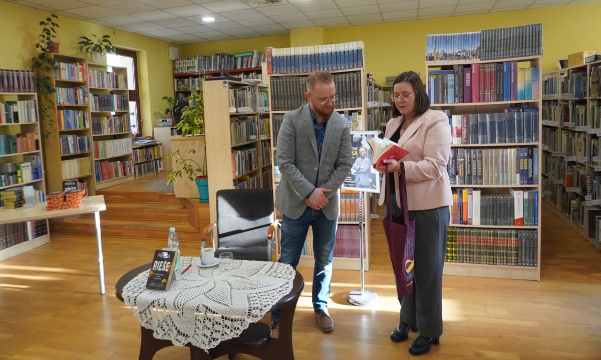 Spotkanie poświęcone było przede wszystkim najnowszej książce autora – „Riese. Tajemnica Gór Sowich”. Jak podkreślił pisarz, jest ona kontynuacją powieści „Gustloff. Tajemnica Bursztynowej Komnaty”. W obu tytułach pojawiają się ci sami bohaterowie, jednak – jak zaznaczył – „to zupełnie inne przygody”. Autor zwrócił również uwagę, że moment wydania książki dobrze zbiegł się z ponownym zainteresowaniem tematem poszukiwań legendarnego złotego pociągu.