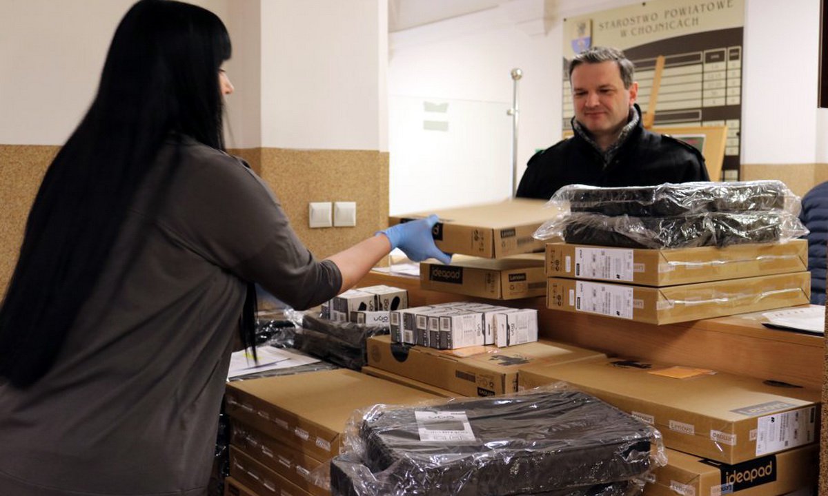 Dyrektorzy szkół odebrali w środę 15 marca laptopy, które mają pomóc uczniom w zdalnej nauce. Z Centrum Projektów Polska Cyfrowa powiat chojnicki otrzymał pieniądze na zakup 40 sztuk.