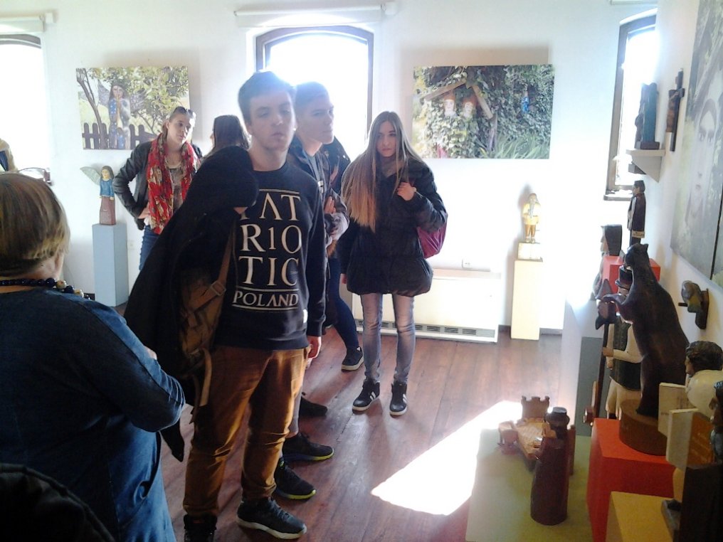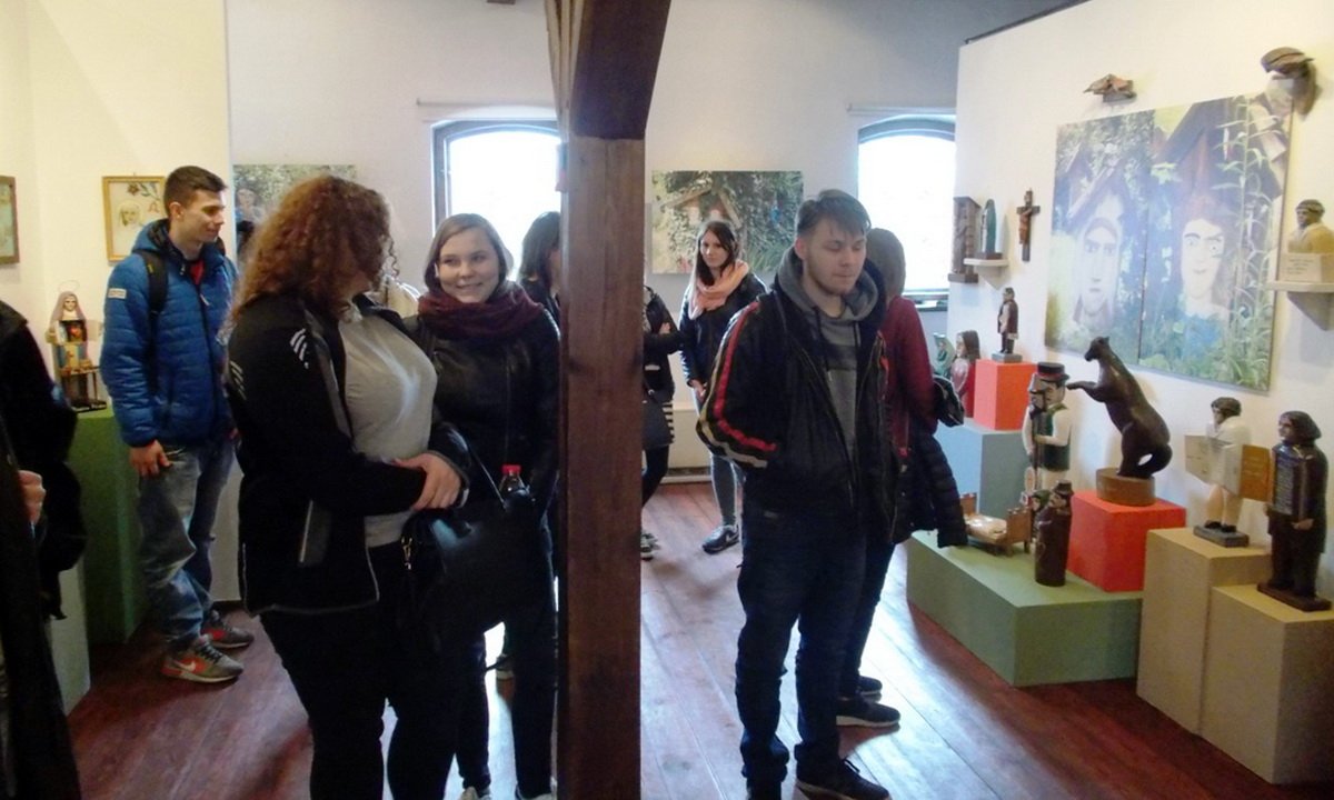 Uczniowie Technikum nr 3 w Chojnicach na lekcjach języka kaszubskiego mieli okazję obejrzeć wystawę rzeźb artysty ludowego Józefa Chełmowskiego.