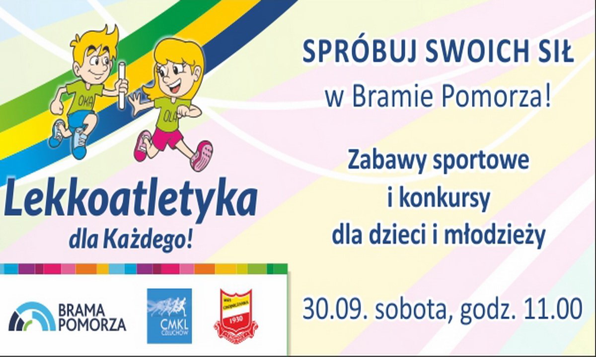 CMKL Człuchów, MKS Chojniczanka i CH Brama Pomorza zapraszają dzieci wraz z rodzicami na wyjątkowy trening w ramach projektu Lekkoatletyka dla każdego.