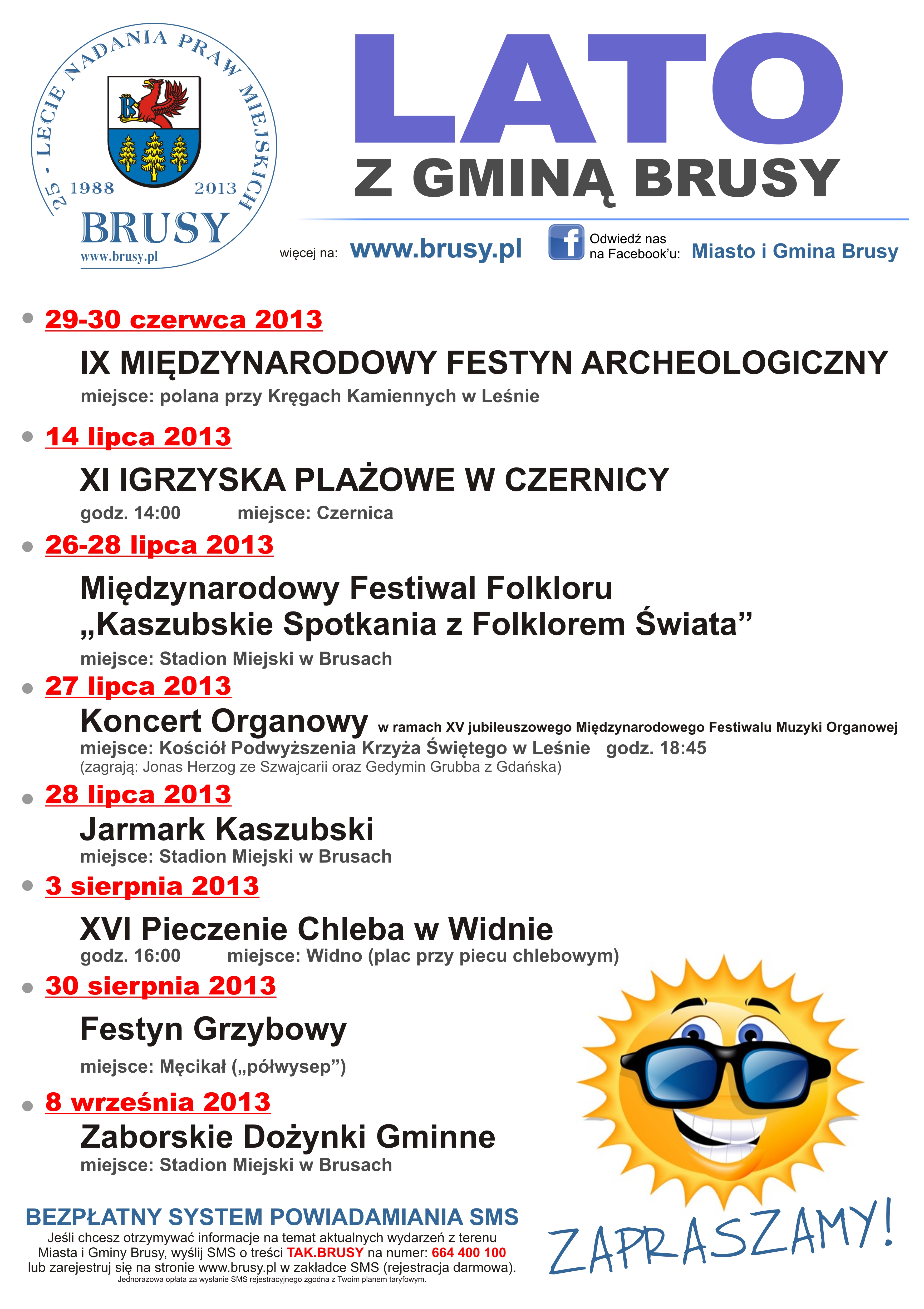 W okresie wakacyjnym (lipiec – sierpień) na terenie Gminy Brusy zostaną zorganizowane imprezy kulturalne i sportowo – rekreacyjne. Do wzięcia w nich udziału zaprasza Urząd Miejski w Brusach.