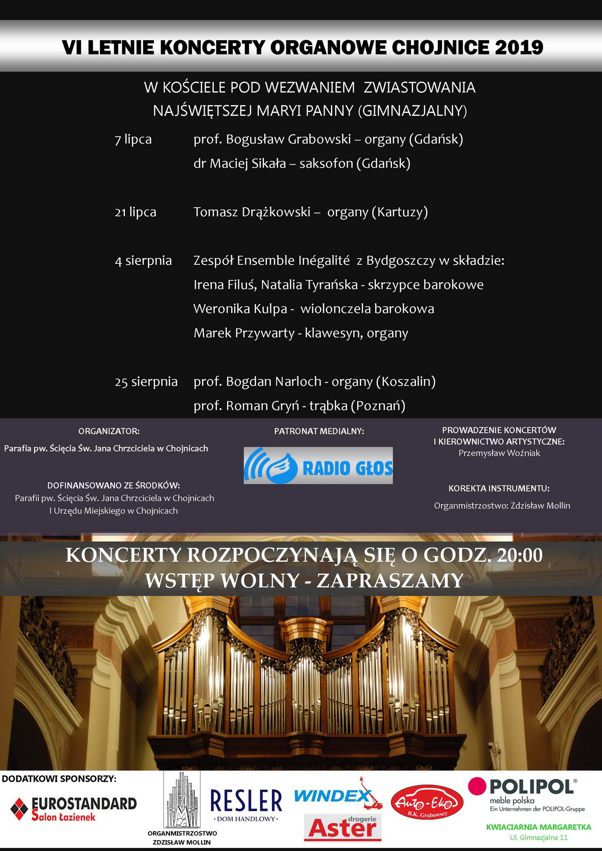 Zapraszamy na „VI Letnie Koncerty Organowe Chojnice 2019” do Kościoła Gimnazjalnego. Pierwszy koncert odbędzie się w niedzielę 7 lipca o godz. 20:00 w wykonaniu wykładowców Akademii Muzycznej w Gdańsku.