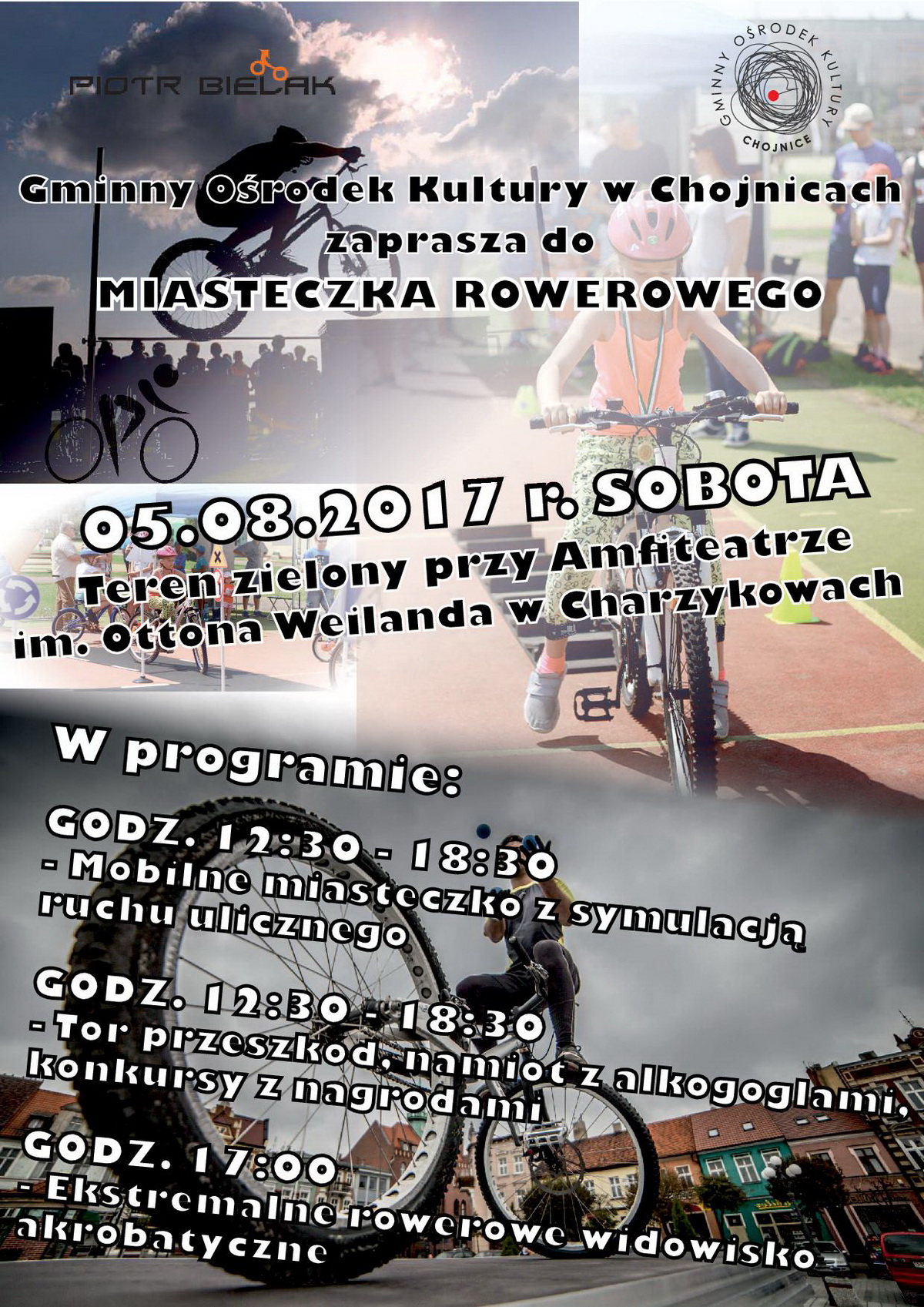 Pod koniec imprezy o godzinie 17.00 odbędzie się ekstremalny rowerowy pokaz akrobatyczny w wykonaniu Piotra Bielaka. Zatem zapraszamy do wspólnej zabawy.