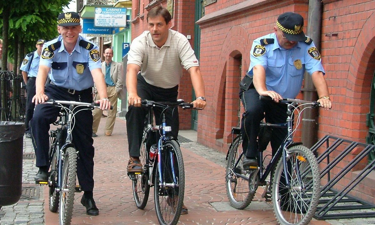 Zwolennikiem jazdy rowerowej od kilku lat jest także burmistrz Arseniusz Finster, wprawdzie do pracy dojeżdża samochodem, to na zdjęciu z archiwum i w takiej asyście mógł poczuć się bezpieczny. | fot. Ilustracyjne