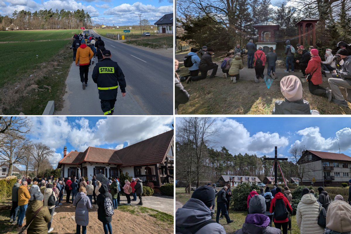 6 kwietnia 2025 14:28Po porannej mszy świętej i pamiątkowym zdjęciu, ruszyliśmy z Krojant w pielgrzymi szlak przez malownicze drogi leśne, polne, ścieżki rowerowe, dochodząc kolejno do Klawkowa, Czartołomia, Powałek, Klosnowa, Zbenin, Kłodawy i ponownie doszliśmy do Krojant.