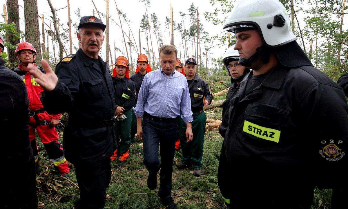 Minister Mariusz Błaszczak niedaleko Suszka odwiedził pracujących w lesie strażaków i podziękował im za ofiarną pracę podczas akcji ratunkowej w nocy z piątku na sobotę, ale też za tytaniczną pracę, jaką wykonali i nadal wykonują przez te wszystkie dni od nawałnicy.