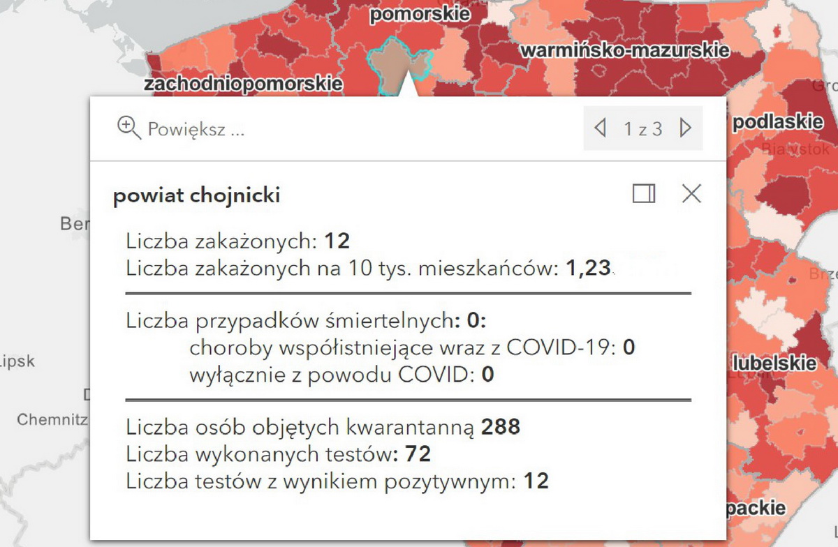 Mamy 6 tys. 802 nowe i potwierdzone przypadki zakażenia koronawirusem poinformowało w środę Ministerstwo Zdrowie. W województwie pomorskim odnotowano ich 647, w tym 12 w powiecie chojnickim.