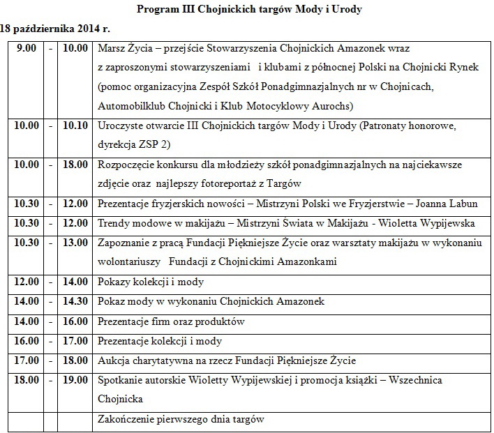III Targi Mody i Urody. Przedsięwzięcie jest wynikiem pracy grona osób i uczniów Zespołu Szkół Ponadgimnazjalnych nr 2 w Chojnicach. Prezentacje odbędą się w dniach 18 - 19 października w Centrum Park w Chojnicach.