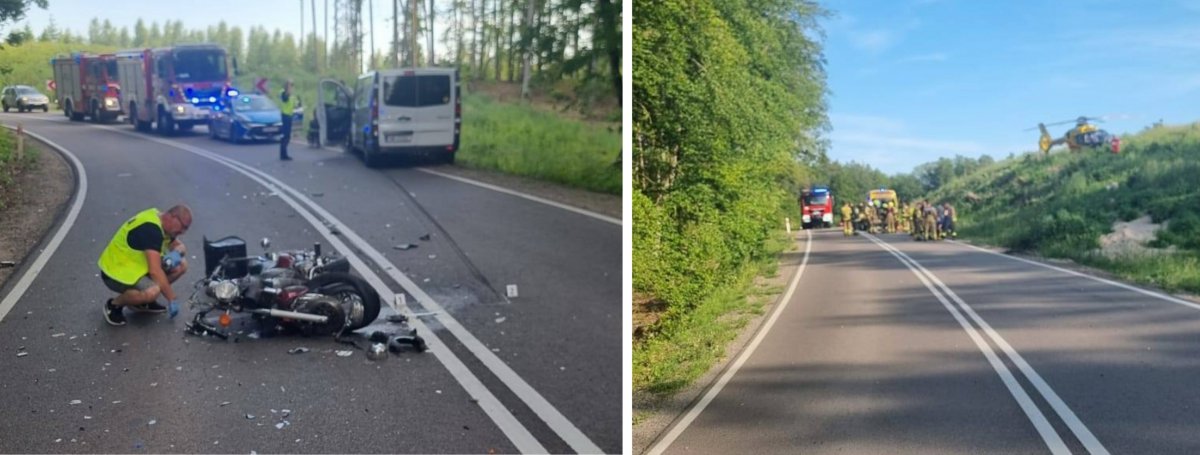 Motocyklista z obrażeniami ciała został przetransportowany śmigłowcem Lotniczego Pogotowia Ratunkowego do szpitala. Kierowca renaulta był trzeźwy. Na miejscu pracowali policjanci oraz grupa dochodzeniowo-śledcza. Funkcjonariusze wykonali oględziny pojazdów, zabezpieczyli wszystkie ślady oraz zatrzymali dowody rejestracyjne od rozbitych pojazdów. Obecnie policjanci wyjaśniają dokładne przyczyny i okoliczności tego wypadku.