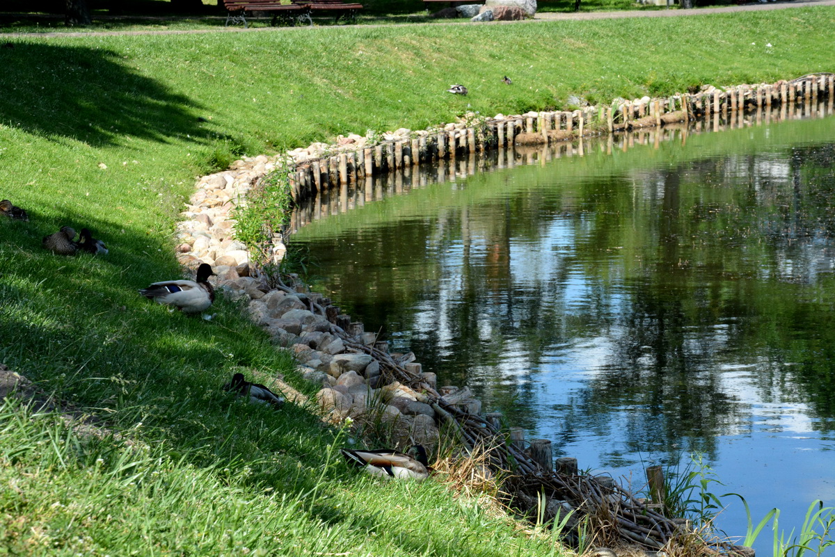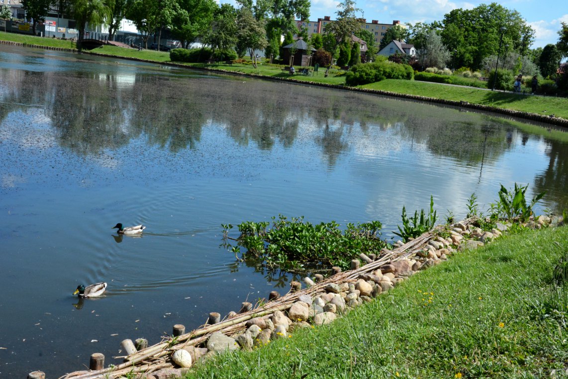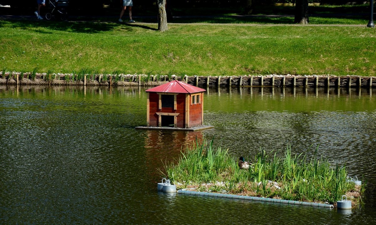 Spacerując alejkami przy zbiornikach wodnych w parku Tysiąclecia, nie da się nie zauważyć, że ich brzegi okalają faszyny, przy których wylegują się kaczki. Na jednym ze stawów kilka tygodni temu pojawiła się też mała, pływająca wyspa lęgowa dla ptactwa.