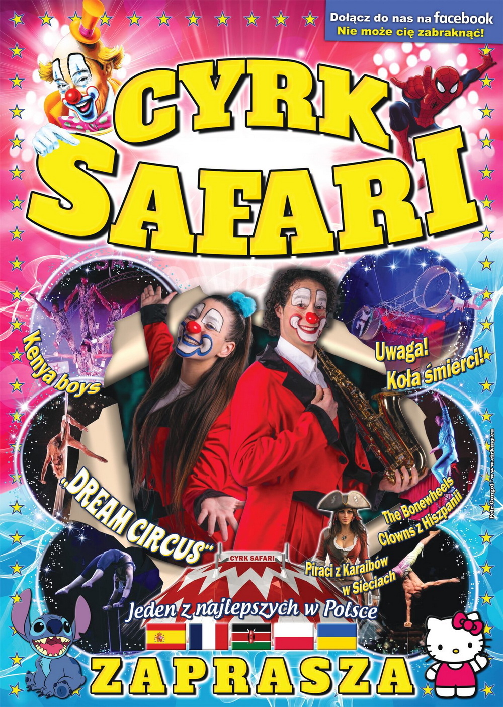 Bawić będą po raz pierwszy tradycyjni, muzykalni clowni - Bonewheel, nie zabraknie również postaci z bajek. Nie przegapcie tej okazji i bawcie się razem z nami pod nowym namiotem Cyrku Safari - zapraszamy na spektakle: Tuchola ulica Towarowa 23.06. (poniedziałek) - godz. 17:00. Chojnice ul. Wielewska/Książąt Pomorskich 24.06.(wtorek) - godz. 17:00. Bilety do zakupienia w dniu przedstawienia w cyrkowej kasie od godziny 10:00. Mamy dla Państwa również specjalną promocję - z wydrukowanym lub znalezionym na terenie miasta kuponem (ulotką), przypada 10 złotych rabatu na każdy, zakupiony w cyrkowej kasie bilet.