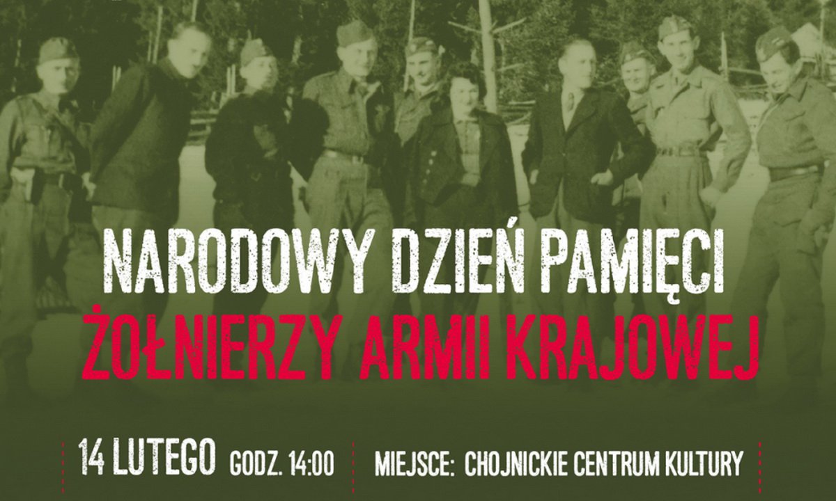 Mieszkańcy Polski byli niewolnikami podzieleni między dwóch ciemiężycieli. I w tych zabójczych warunkach w Polsce powstaje państwo podziemne z swoimi: szkołami, teatrami, wydawnictwami, wojskiem, itp.14 lutego 1942 r. Naczelny Wódz gen. Władysław Sikorski powołuje Armię Krajową (AK). O tych wszystkich wydarzeniach chcielibyśmy przypomnieć na wydarzeniu „Narodowy Dzień Pamięci Żołnierzy Armii Krajowej" w Chojnickim Centrum Kultury.