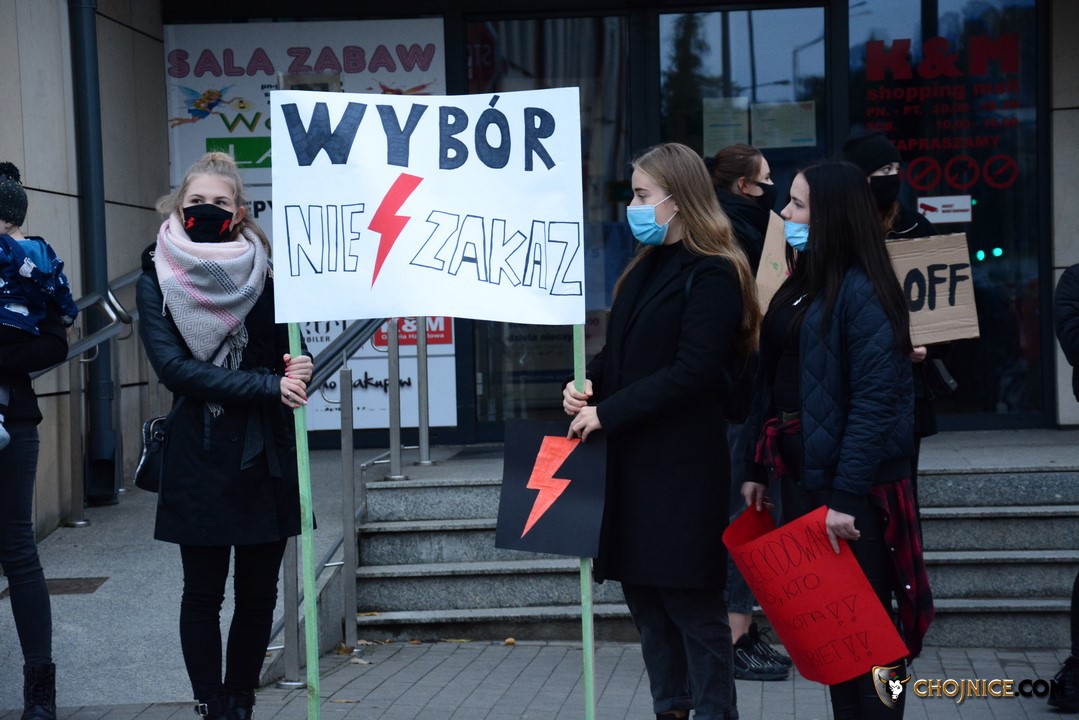 Po odczytaniu manifestu, kolumna protestujących dziewcząt, ich kolegów, kobiet i ich partnerów, przemaszerowała spod biura posła pod chojnicka bazylikę, a następnie pod kościół Matki Bożej Królowej Polski. Pikietujący cały czas wołali „Wolność!”, „Moje ciało, moja sprawa!”, „Wybór, nie zakaz!”. Pojawiały się także wulgarne nawoływania, typu „J***ć PiS”. Manifestującym towarzyszyły policyjne radiowozy. Z nich, przez głośniki rozbrzmiewały komunikaty, przypominające o obowiązujących obostrzeniach związanymi z trwająca pandemia koronawirusa.