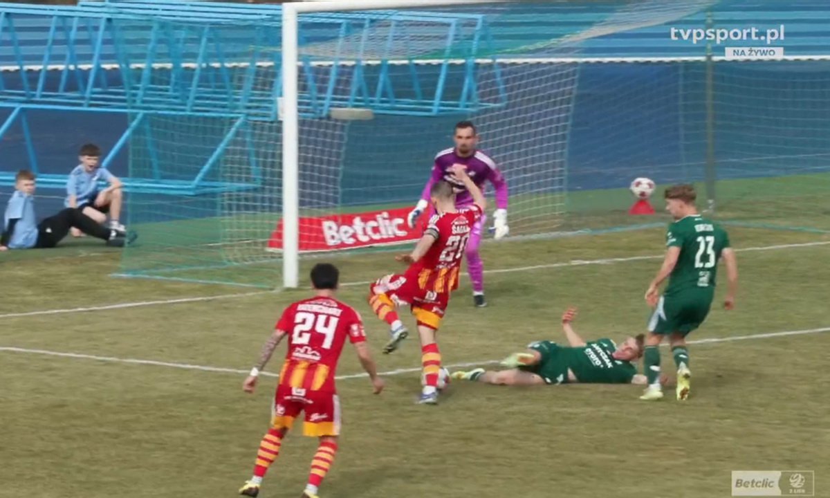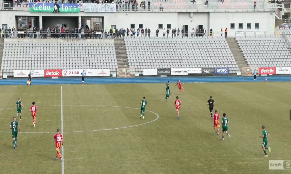 Pierwsze zwycięstwo w sezonie wiosennym odnotowała Chojniczanka wygrywajac w Kaliszu1:0. | fot. screen tvp sport