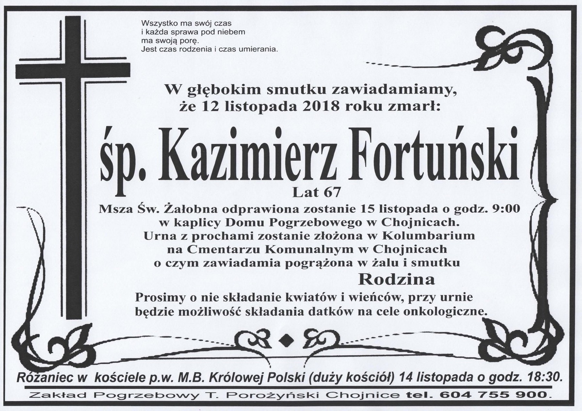 W poniedziałek po ciężkiej chorobie zmarł Kazimierz Fortuński, m.in. wiceprezes Rady Nadzorczej Spółdzielni Mieszkaniowej. Miał 67 lat.