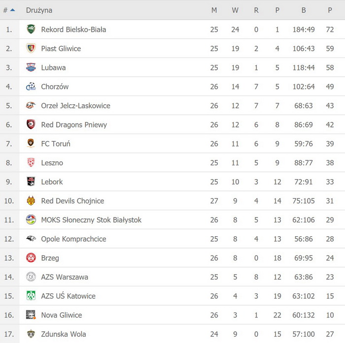 Red Devils Chojnice: Sobański, Storozhuk, Przemysław Laskowski, Arriazu, Medon, Kollar, Patryk Laskowki, Świtoń, Kokoladze, D. Laskowski, Kartuszyński, Perkovic.