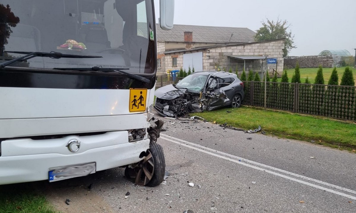 5 października 2021 12:24Do zdarzenia doszło ok. godz. 8.00 na łuku drogi. - Kierujący nissanem jadąc od strony Chojnic w kierunku Dąbrówki na łuku drogi stracił panowanie nad pojazdem. W konsekwencji zderzył się z jadącym z naprzeciwka autobusem. Kierujący zostali przebadani na zawartość alkoholu, byli trzeźwi. Od kierowcy osobówki zabezpieczono krew do badań laboratoryjnych, wyniki tych badań pomogą wykluczyć, czy mężczyzna nie kierował pod wpływem środków narkotycznych - mówi Justyna Przytarska, rzecznik chojnickiej policji.