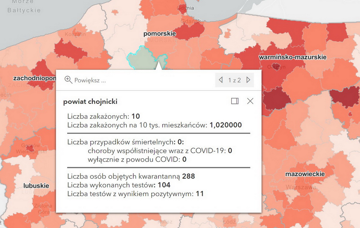 Ministerstwo Zdrowia poinformowało w sobotę o kolejnych 6 tys. 586 przypadkach koronawirusa w Polsce. W województwie pomorskim odnotowano ich 576, w tym 10 w powiecie chojnickim.