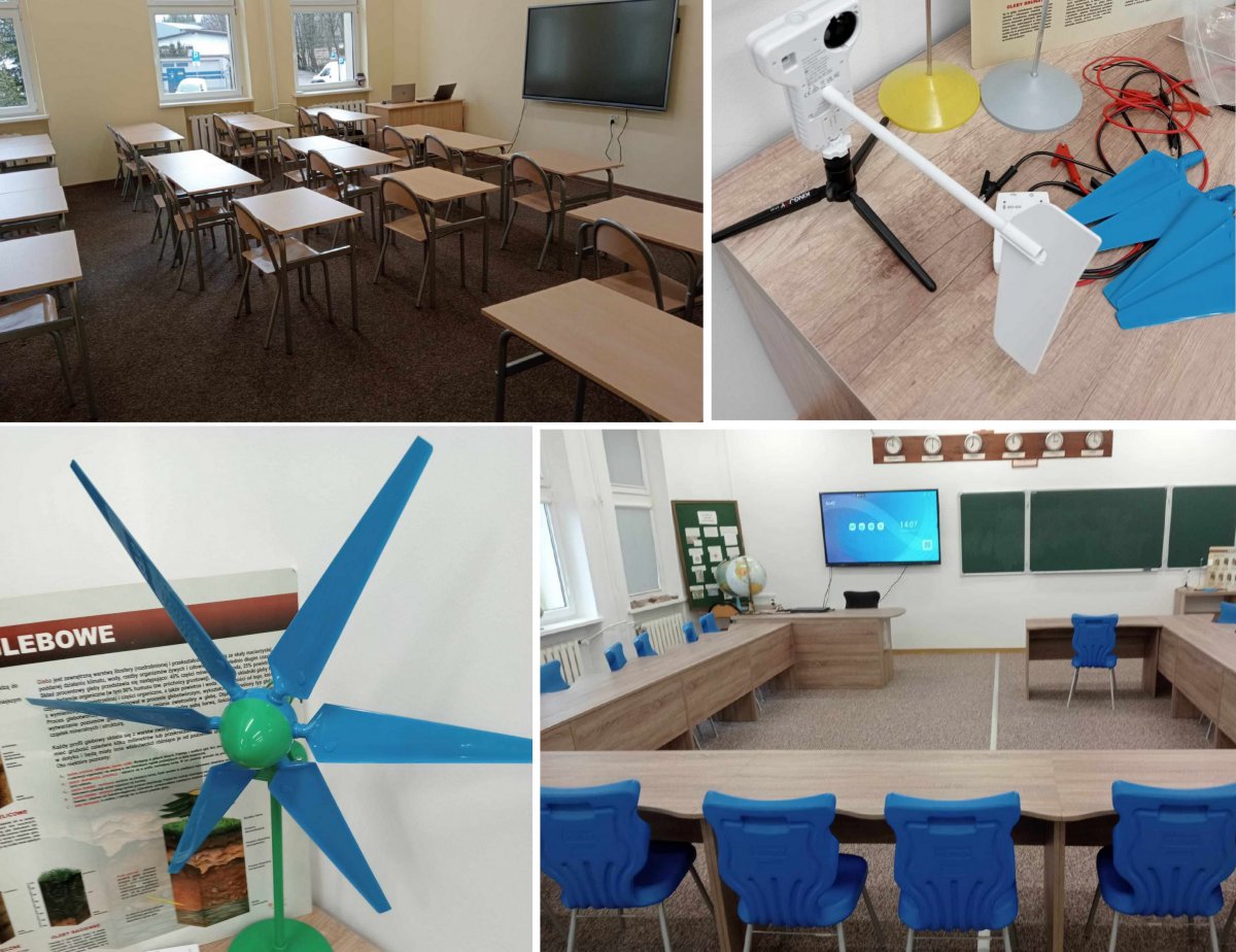 22 lutego 2024 09:48Pierwsza z nich to pracownia ekologiczna. Uczniowie uzyskają w niej dostęp do nowoczesnych narzędzi i wyposażenia, które pozwolą im na rozwijanie edukacji ekologicznej na wysokim poziomie. Zestawy demonstracyjne do fotowoltaiki, solarów oraz turbiny wodnej umożliwiają wykonywanie praktycznych doświadczeń. Zestaw multimedialny i nowe meble tworzą komfortowe warunki do nauki.