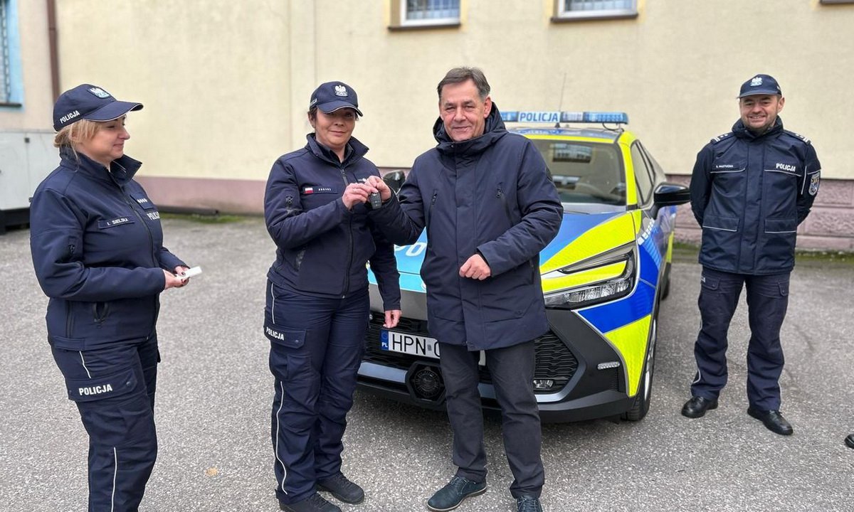 W piatek 21 listopda przed Komendą Powiatową Policji w Chojnicach odbyła się uroczystość oficjalnego przekazania nowego, ekologicznego radiowozu. Nowoczesna Toyota C-HR MY’25 typu plug-in wzbogaci flotę pojazdów używanych w codziennej służbie na terenie miasta i gminy. Wartość pojazdu wyniosła nieco ponad 201 tysięcy złotych. Zakup został sfinansowany z dwóch źródeł: Miasto Chojnice przeznaczyło na ten cel 90 tysięcy złotych, pozostałą część zapewnili Wojewódzki Fundusz Ochrony Środowiska i Gospodarki Wodnej w Gdańsku oraz Komenda Główna Policji, w ramach projektu doposażenia Policji w ekologiczne pojazdy hybrydowe.