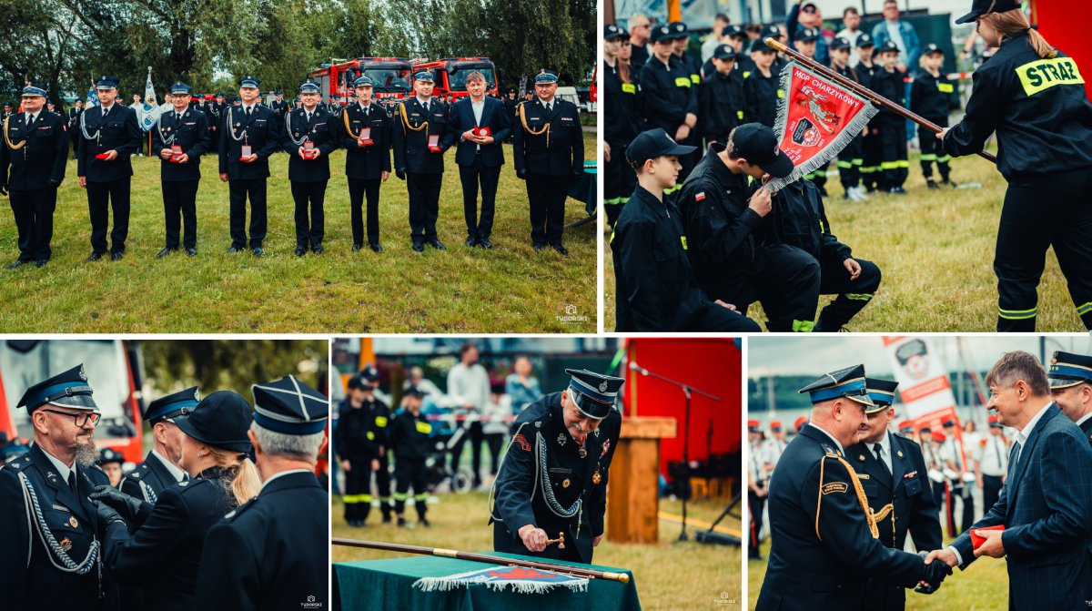 W trakcie uroczystości nie zabrakło również przemówień i podziękowań od zaproszonych gości. Pod adresem druhów płynęły serdeczne życzenia oraz wiele ciepłych słów, które podkreśliły ich zaangażowanie i oddanie w służbie społeczności. „Piękna uroczystość, piękna sceneria, ale w tym wszystkim chyba najpiękniejsi jesteście wy i wasza oddana służba” - powiedziała Wiceprezes Zarządu Głównego ZOSP RP w Warszawie druhna Teresa Tiszbierek. Z kolei Wójt Gminy Chojnice Zbigniew Szczepański w swojej wypowiedzi pokreślił, że „jesteście sercem i duszą tej pięknej, 2,5-tysięcznej miejscowości, wszystkie pozostałe jednostki są bardzo aktywne, ale ta jednostka, OSP Charzykowy, jest żelazną rezerwą dla Państwowej Straży Pożarnej w Chojnicach”.
