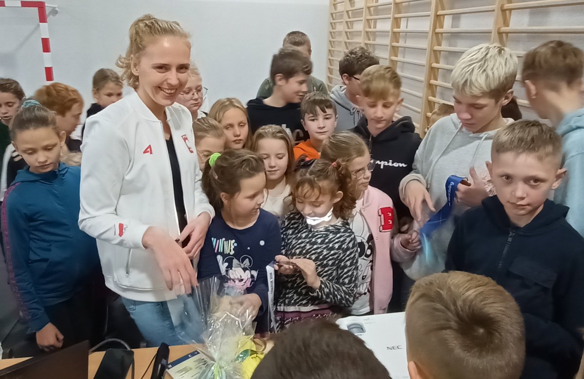 Na koniec dzieci mogły zdobyć autograf pani Irminy i zrobić sobie zdjęcie z jednym z licznych medali. To spotkanie na długo zostanie w naszej pamięci.