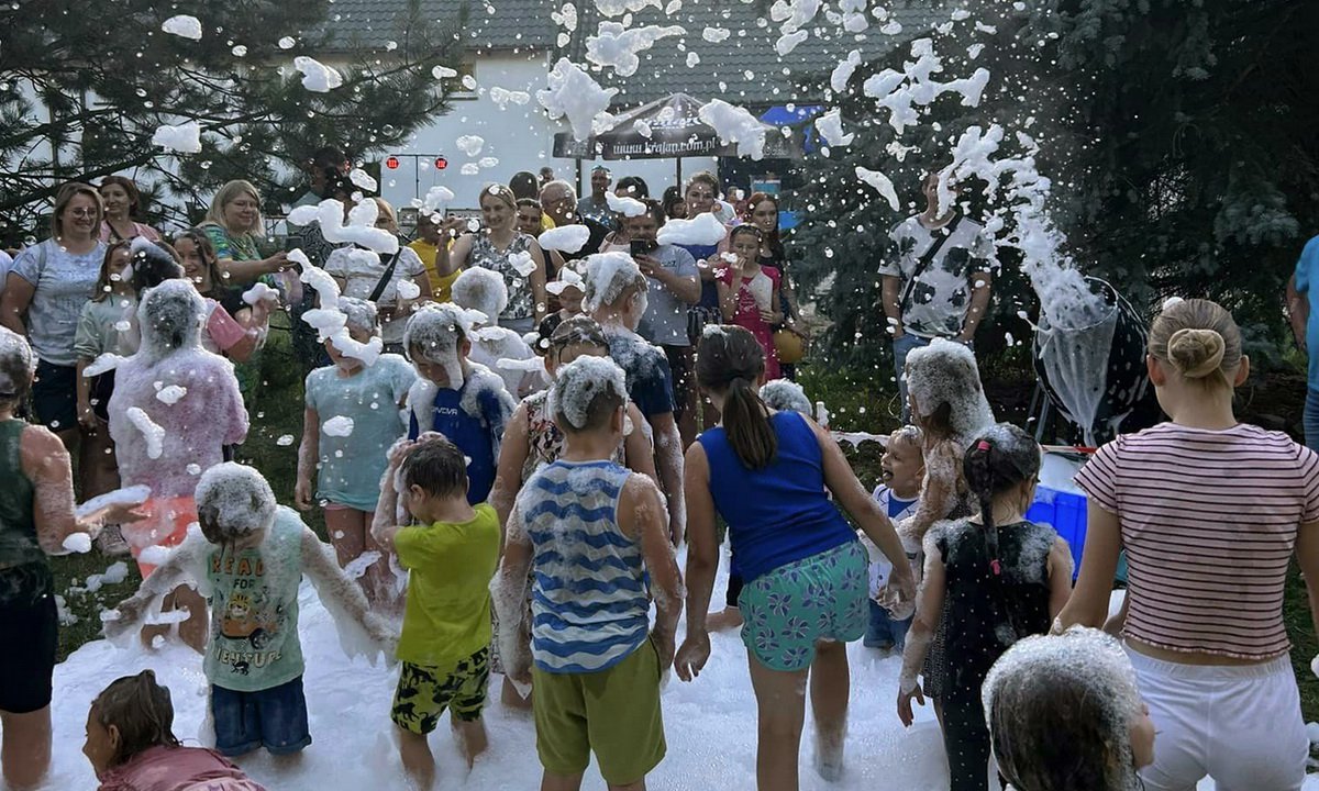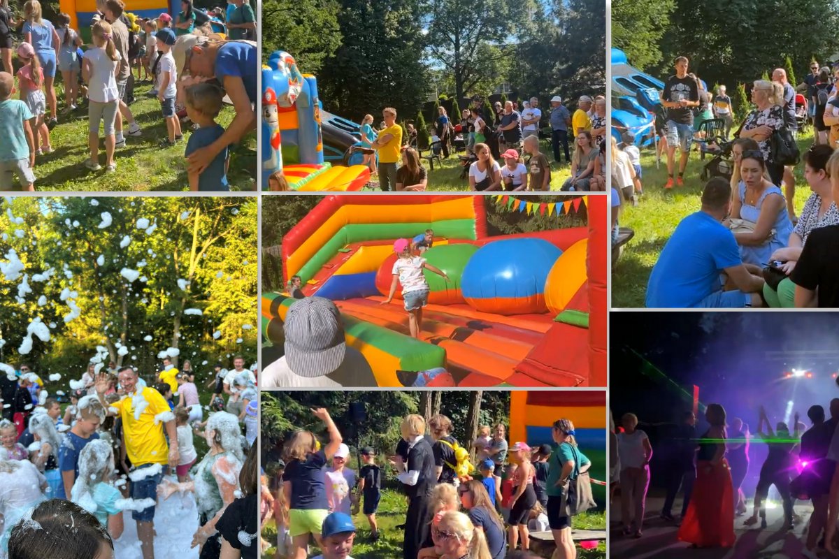 Słoneczna pogoda i upał nikomu nie przeszkadzał, tym bardziej, że przygotowano wiele atrakcji nie tylko dla najmłodszych. Atrakcją była piana party Na festynie nie mogło zabraknąć dmuchawców. Dla zgłodniałych był catering i grill. Wieczorem na nieco starszych czekała tradycyjna potańcówka i choć temperatura spadła, to na parkiecie cały czas było gorąco, a chętnych do wspólnej zabawy nie brakowało.