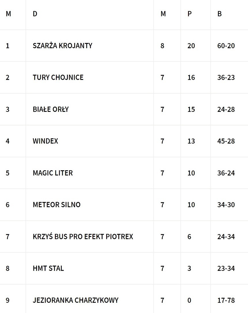 Tabela po 8 kolejkach