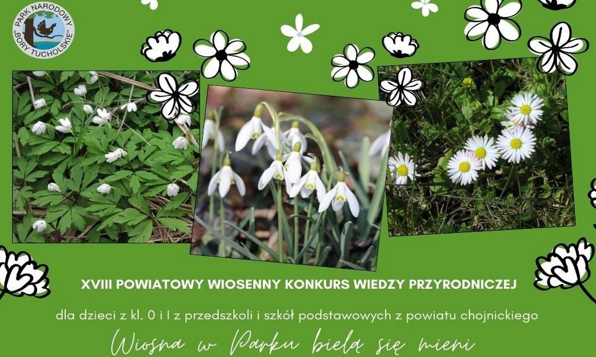 Park Narodowy „Bory Tucholskie” zaprasza dzieci z kl. 0 i I z przedszkoli i szkół podstawowych z powiatu chojnickiego do wzięcia udziału w XVIII Powiatowym Wiosennym Konkursie Wiedzy Przyrodniczej. Tematem konkursu to, „Wiosna w Parku bielą się mieni”.