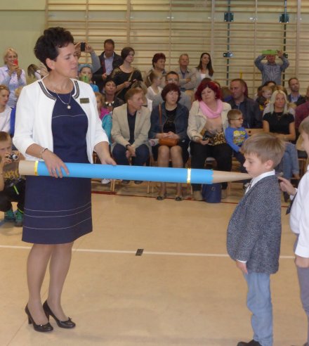 Po złożeniu ślubowania p. dyrektor Aleksandra Mroczkowska wielkim magicznym ołówkiem dokonała pasowania na ucznia każdego pierwszaka. Każde z dzieci otrzymało na pamiątkę akt ślubowania oraz drobny upominek. Wszystkim pierwszakom życzymy wielu sukcesów! Powodzenia!