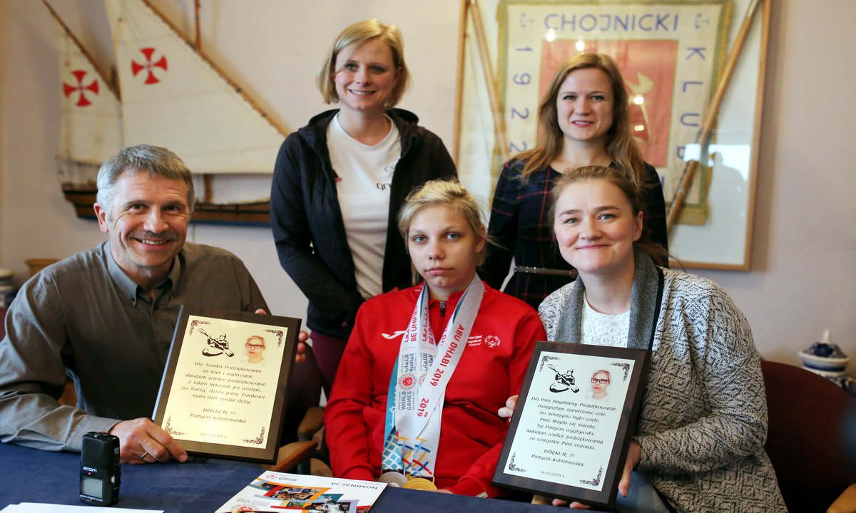 Zawodniczka „Szansy” przyszła z trzema medalami Światowych Igrzysk Letnich na szyi. Była nieco speszona i pewnie bardziej stresowała się obecnością dziennikarzy, aparatów i kamer, niż samymi startami w Abu Dhabi. Tam, jak relacjonował dziś jej trener Tomasz Biesek, była bardzo skoncentrowana. Jakby to nie była ona, bo Patrycja – co zgodnie przyznają trenerzy - to mały wulkan energii. W Abu Dhabi jednak rewelacyjnie podeszłą do startów, mądrze rozłożyła siły zwłaszcza na 500 metrów i od początku do mety wiedziała, co ma robić, by wygrać. Była najlepsza i z przewagą kilku sekund na 200 metrów i kilkunastu sekund na 500 metrów wpłynęła na metę, zdobywając dwa złote medale. Srebro wywalczyła w osadzie podwójnej.