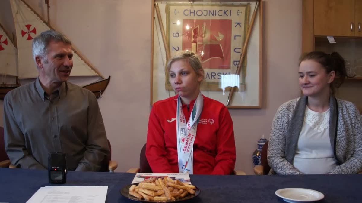 25 marca 2019 19:22Choć w „Szansie” przyznają, że złota dziewczyna Światowych Letnich Igrzysk Olimpiad Specjalnych Patrycja Kobierowska ma swój temperament i na wodzie to jest prawdziwy żywioł, to na dzisiejszym spotkaniu z mediami medalistka była cicha, spokojna i zamyślona. Jakby jeszcze w myślach wspominała świetne starty w Zjednoczonych Emiratach Arabskich.