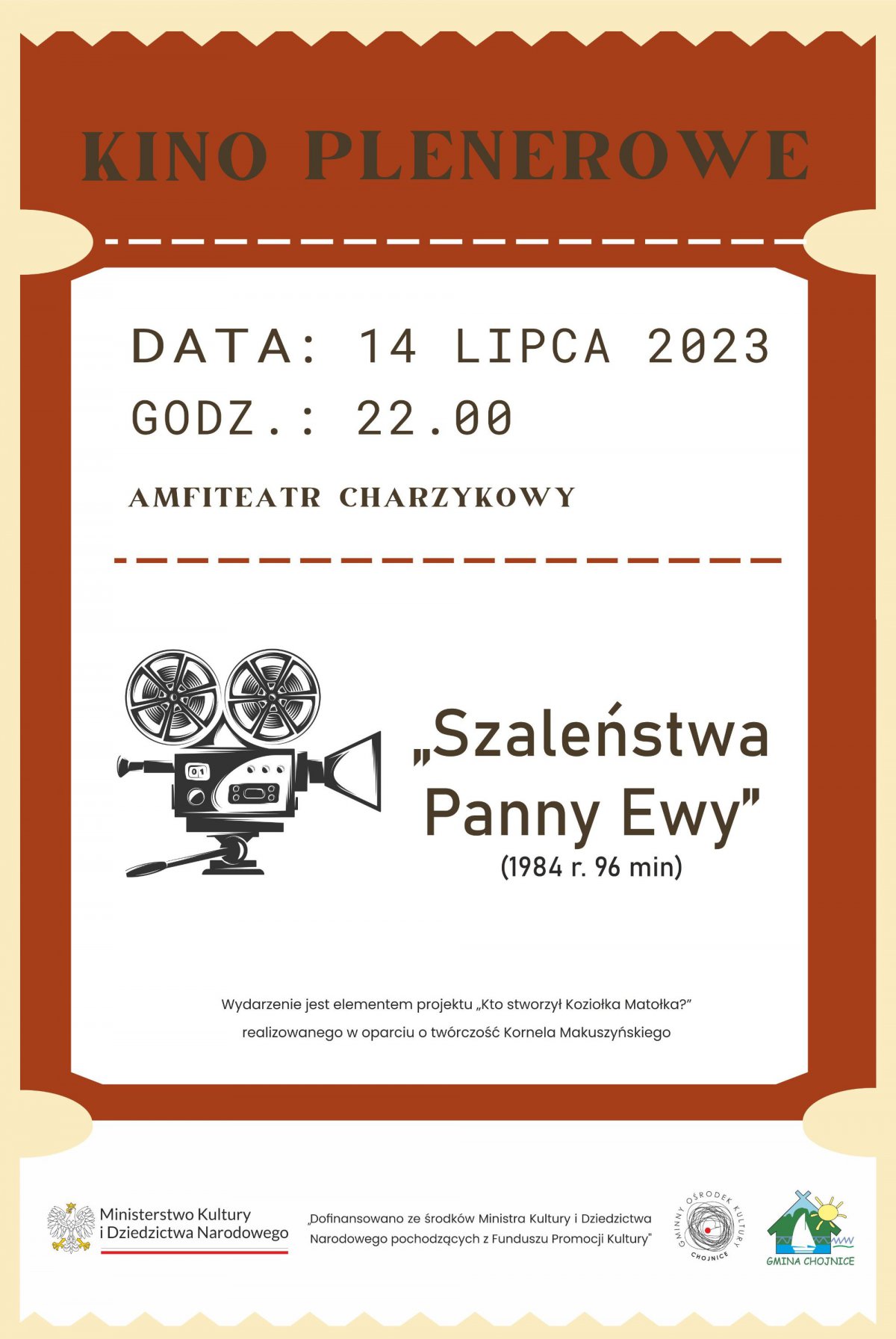 O godzinie 22 zaplanowana jest plenerowa projekcja filmu „Szaleństwa Panny Ewy”. | fot. GOK Chojnice