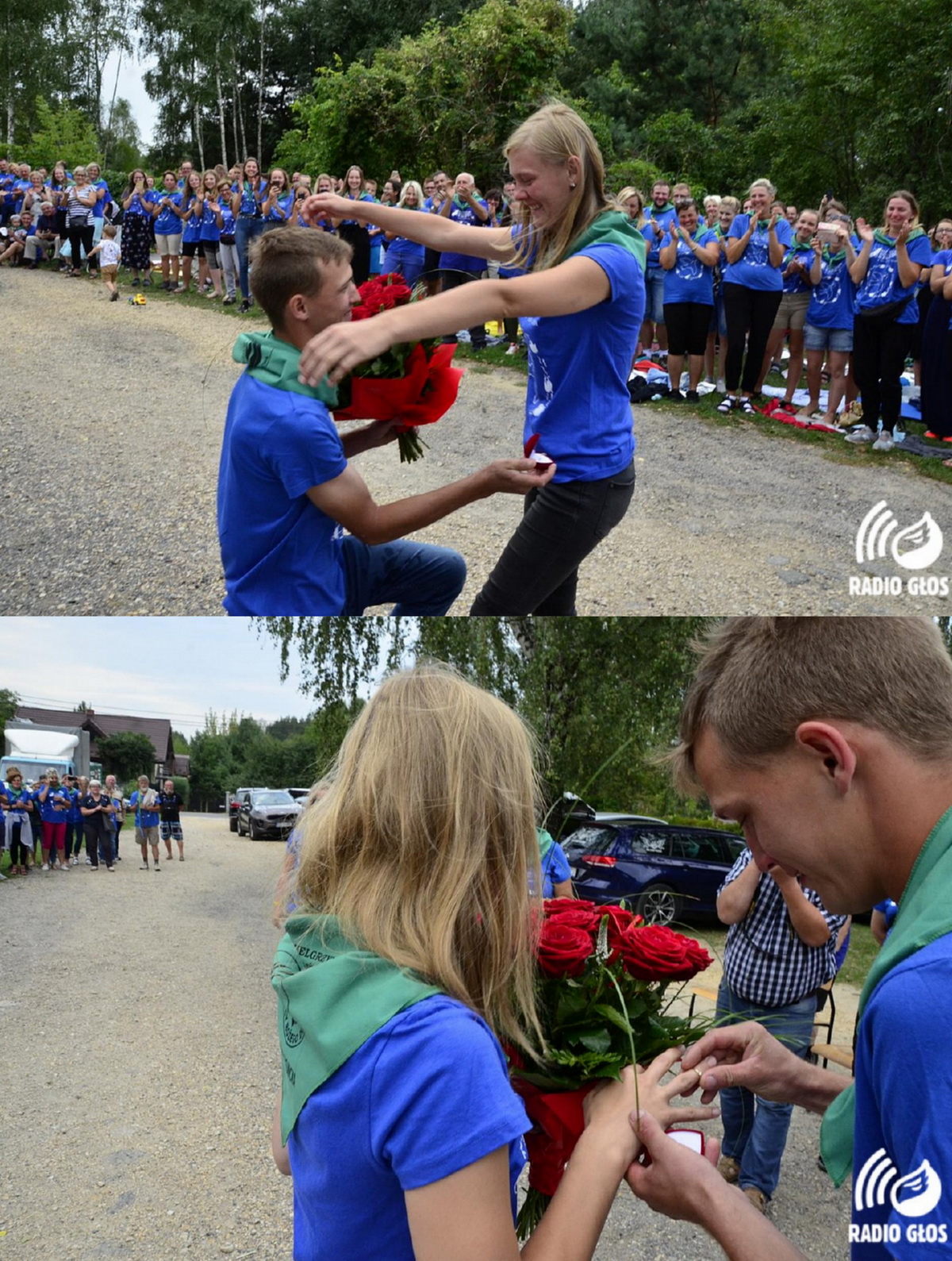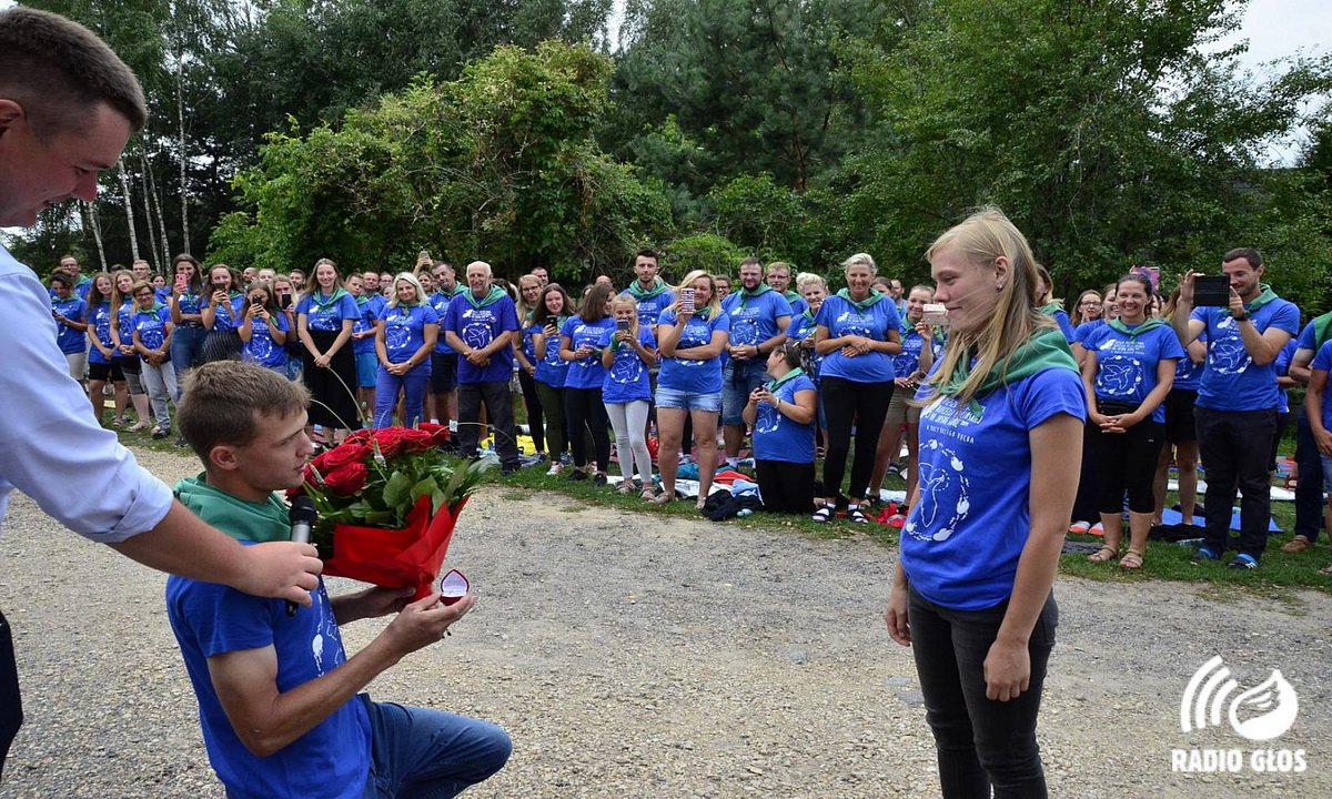 12 sierpnia pod Częstochową spotkał się z pielgrzymami Biskup Pomocniczy Diecezji Pelplińskiej Arkadiusz Okroj. Wczoraj też miało miejsce niecodzienne wydarzenie – oświadczyny jednego z uczestników pielgrzymki – na zdjęciach poniżej m.in. Sławek z gminy Chojnice oświadcza się Patrycji.