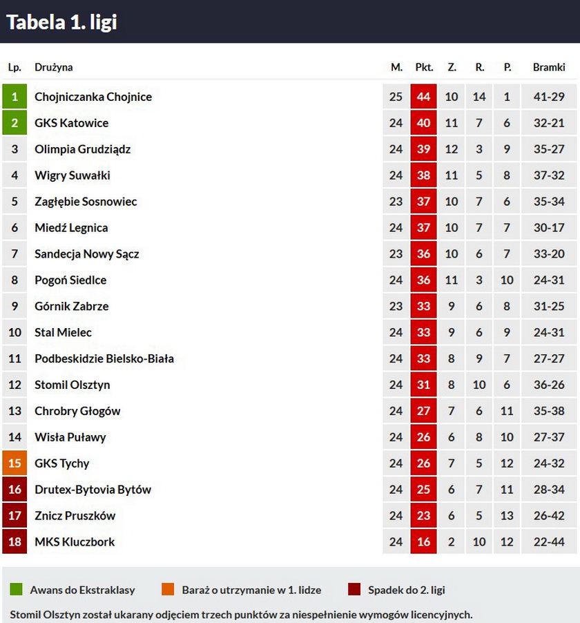 Jak policzyli dziennikarze Polsatu Sport 147 dniu trwała seria Chojniczanki bez zwycięstwa w I lidze. Dziś ta seria została przerwana na niezwykle trudnym terenie w Mielcu. - To nie była do końca zła seria, jak wszyscy ją przedstawiali, bo nie przegrywaliśmy. Dziś przyjechaliśmy do jaskini lwa i wydarliśmy punkty gospodarzom przy niezwykle żywiołowej i wspaniałej publiczności. Tak może wyglądać każdy mecz do końca sezonu, tylko żebym w czerwcu mógł udzielać wywiadu dla innej stacji – mówił po meczu dla Polsatu Sport bohater Chojniczanki Łukasz Budziłek, który w dzisiejszym meczu stanął na wysokości zadania i rozegrał świetne zawody.