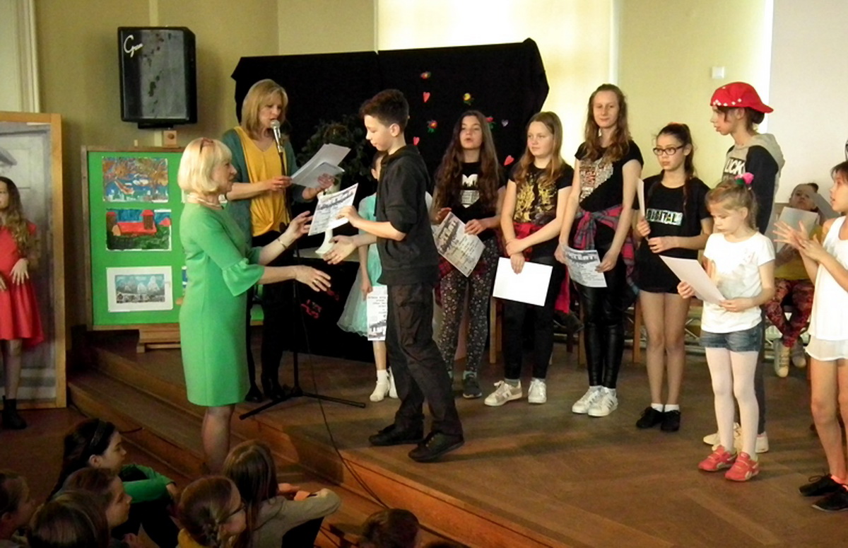 Program prowadziły uczennice kl. V c. Wszyscy uczestnicy otrzymali pamiątkowe dyplomy wręczone przez dyr. Ewę Modrzejewską. Z okazji powitania wiosny wszyscy uczniowie zostali obdarowani smacznymi jabłkami. Impreza została przygotowana pod kier. Idy Jeżakowskiej i Michała Leszczyńskiego.