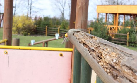 Nasz fotoreporter uważnie przyjrzał się wyposażeniu placu. Niektóre drewniane urządzenia są jeszcze zdatne do użytku, ale w konstrukcji innych czyhają pułapki – spróchniałe deski, wystające gwoździe.
