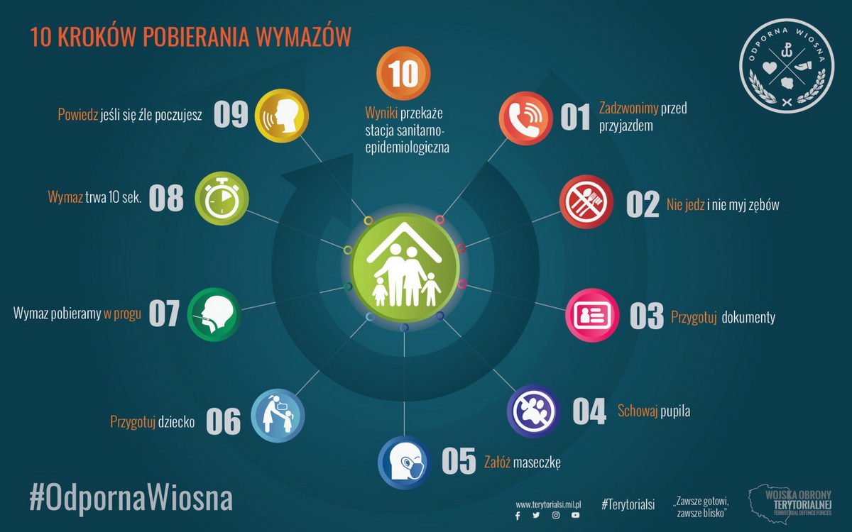 Aby przygotować je do tego przedsięwzięcia, terytorialsi w całym kraju wdrażają specjalną akcję informacyjną skierowaną do najmłodszych. W prosty sposób opisują w niej w jaki sposób zostaną pobrane próbki do badań, informują, że nie należy bać się osób w tych dziwnych kombinezonach. Są to przebrani za bohaterów żołnierze, którzy chcą pomóc szybko uporać się z koronawirusem. Powstał w tym celu specjalny film, który możemy obejrzeć na portalu https://www.youtube.com/watch?v=RXsivJ_mzoQ.
