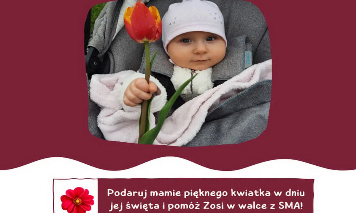 W czwartek 26 maja w Dzień Mamy odbędzie się kiermasz kwiatów, z którego dochód jest przeznaczony na terapię Zosi Szcześniewskiej z Wałdowa w woj. kujawsko – pomorskim, chorej na SMA.