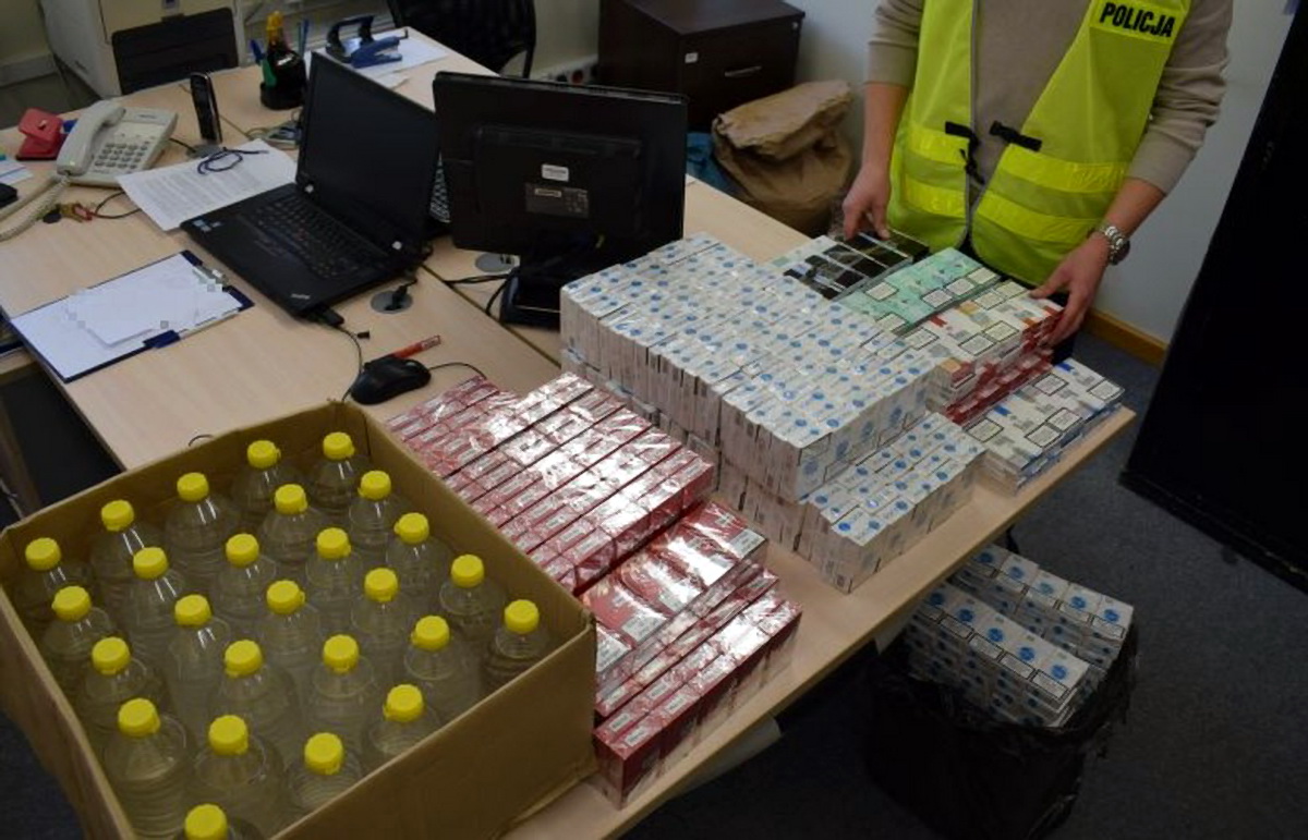 Podczas przeszukania samochodu i pomieszczeń na posesji policjanci zabezpieczyli ponad 15000 sztuk papierosów, 30 kg krajanki tytoniu oraz blisko 30 litrów spirytusu - wszystko bez polskich znaków akcyzy. Właściciel nielegalnego towaru naraził Skarb Państwa na straty w wysokości około 35 tys. złotych.