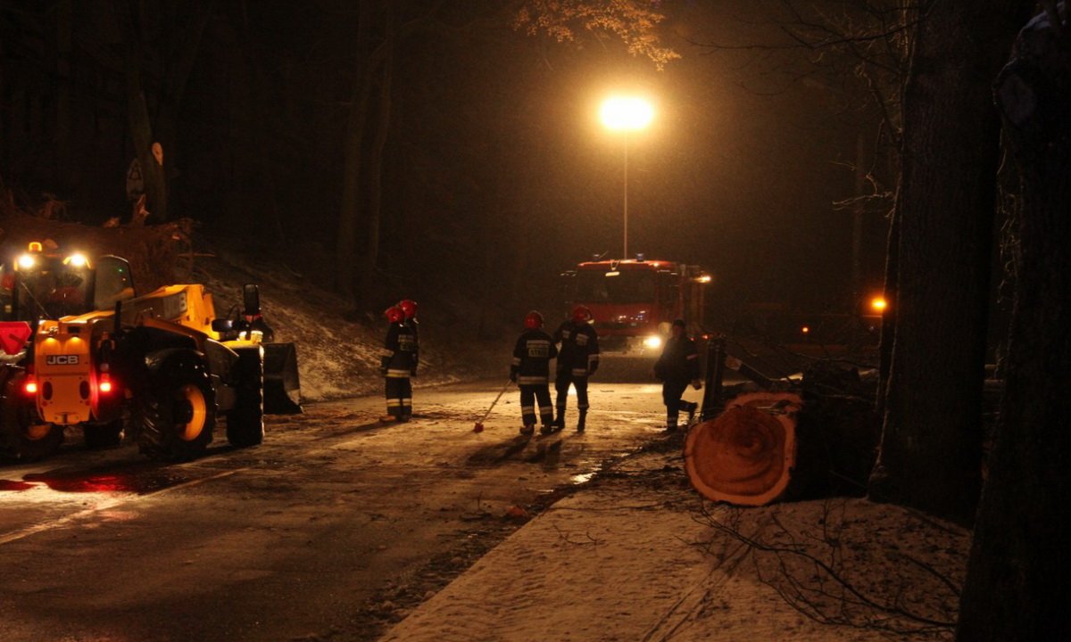Na miejscu chwilę po zdarzeniu pojawiła się straż pożarna, która zajęła się usunięciem drzewa z jezdni.