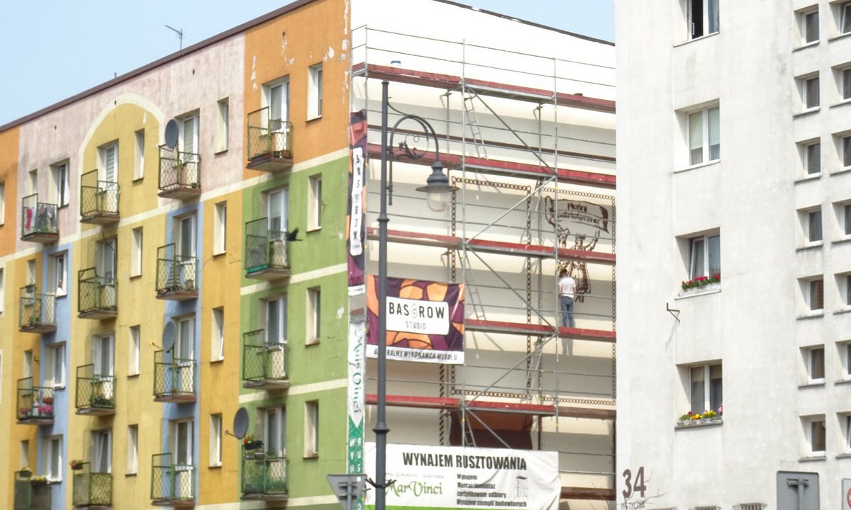 Ruszyły prace przy wykonywaniu murala, który ozdobi ścianę szczytową domu przy ul. 31 Stycznia 36. Jego realizację wylicytowano podczas WOŚP-owego Przystanku z Kulturą w ChCK w styczniu 2024.